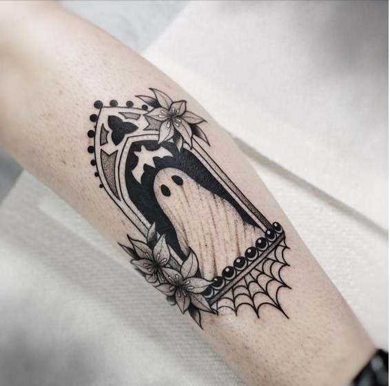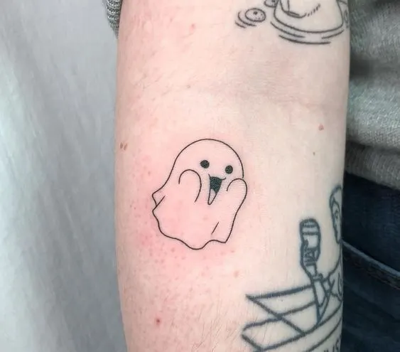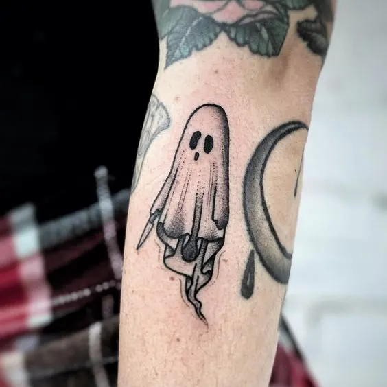This tattoo can symbolize a love for classic horror themes or a quirky take on ghostly apparitions.