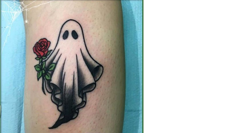 This tattoo is ideal for those who love the Halloween season and want to incorporate a seasonal theme into their ghost tattoo.